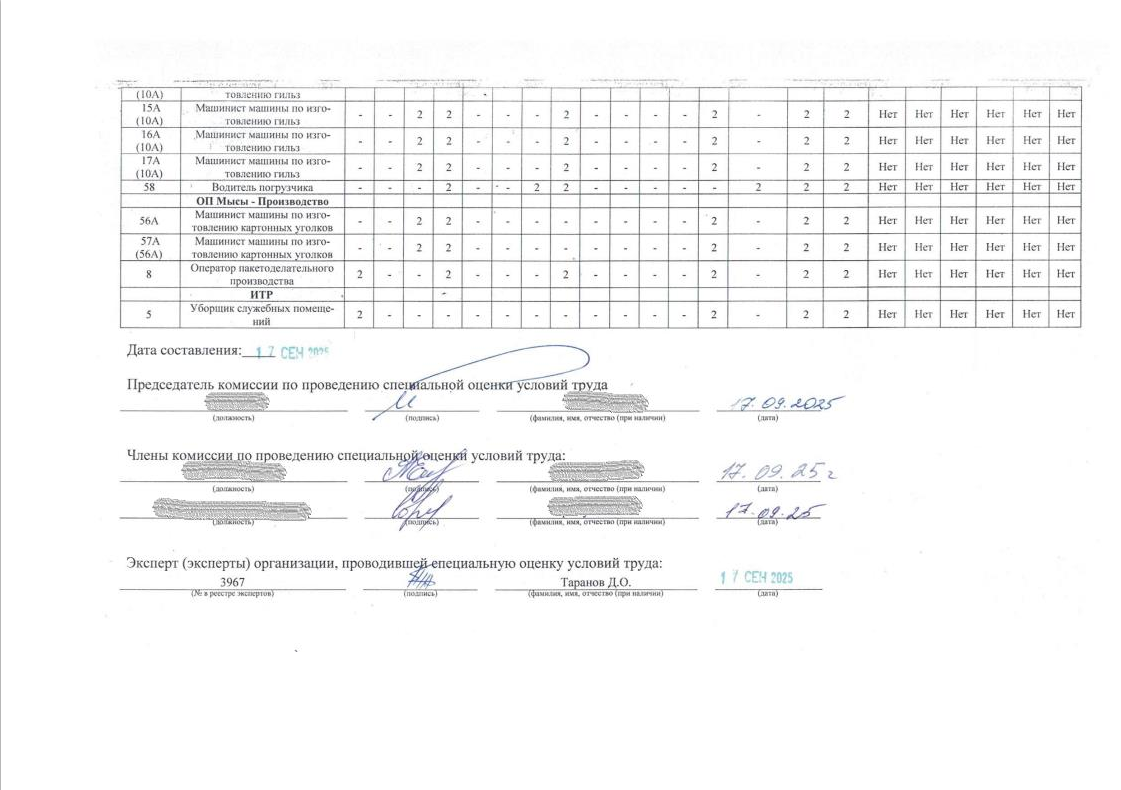 Сводная ведомость результатов СОУТ 09.2025
